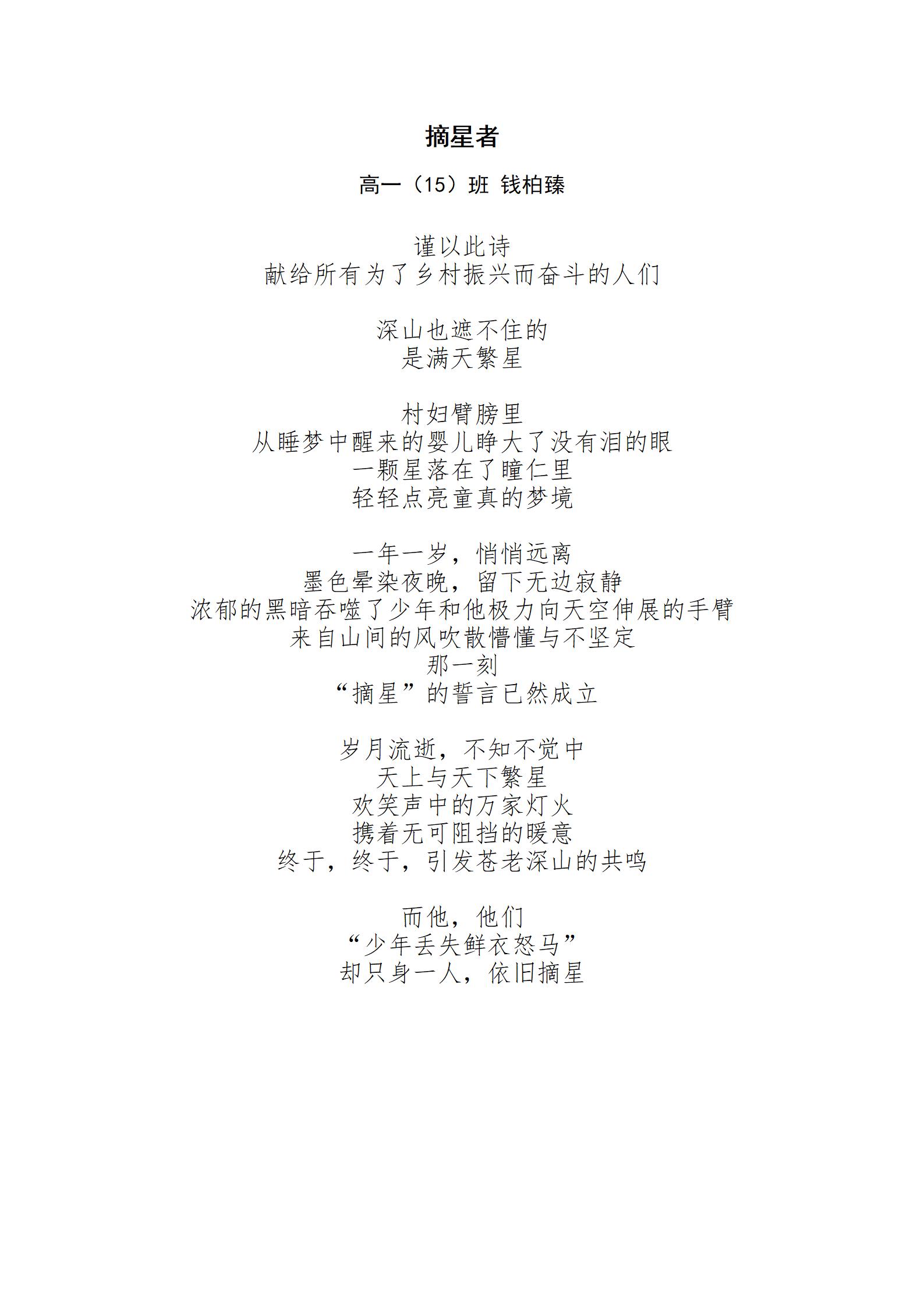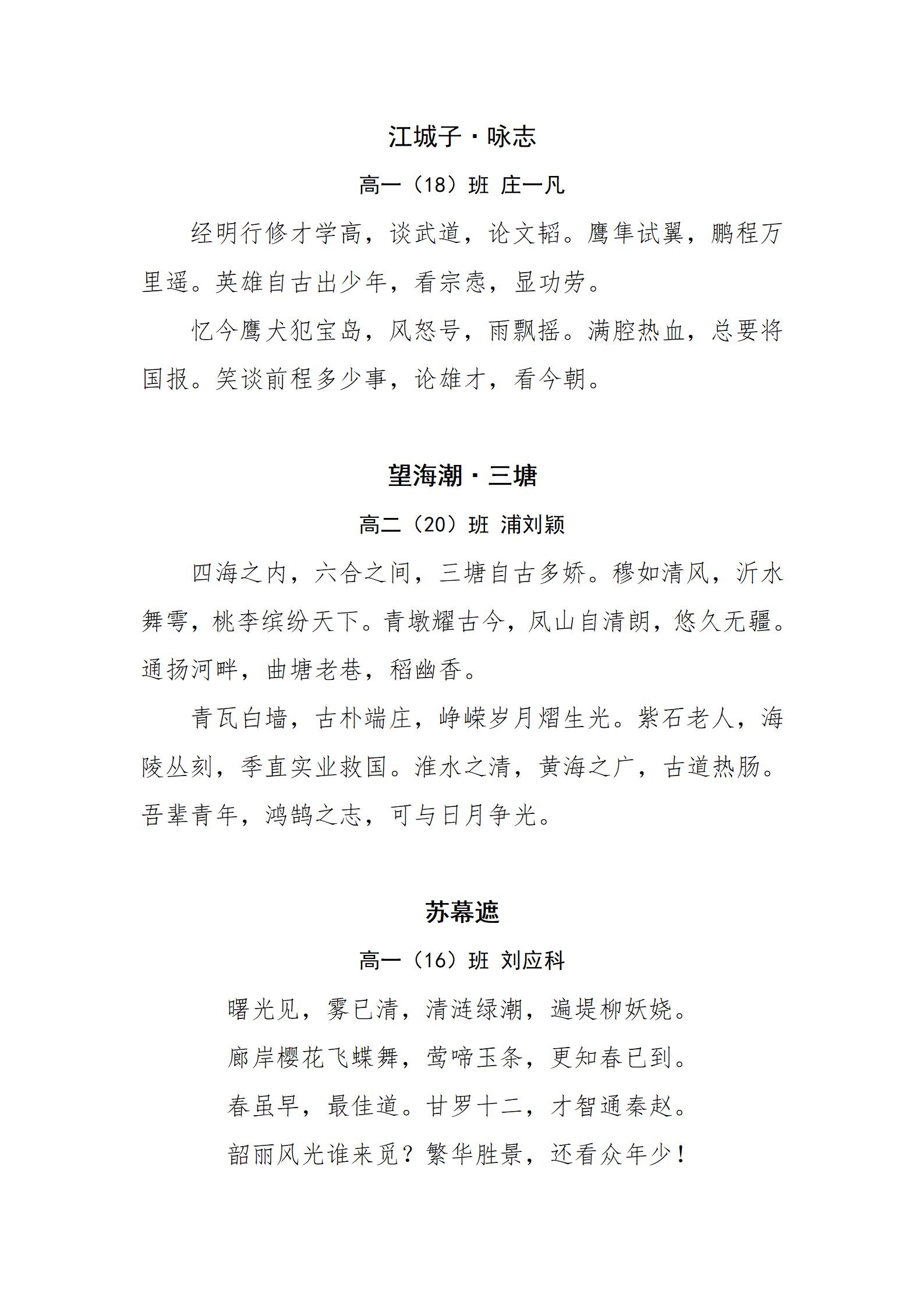 到截稿日期为止,共收到同学们的诗歌投稿338篇。大家用绝句、律诗、词、现代诗等多种诗歌体裁样式,尽情抒发了自己的心声。此处遴选了部分作品。