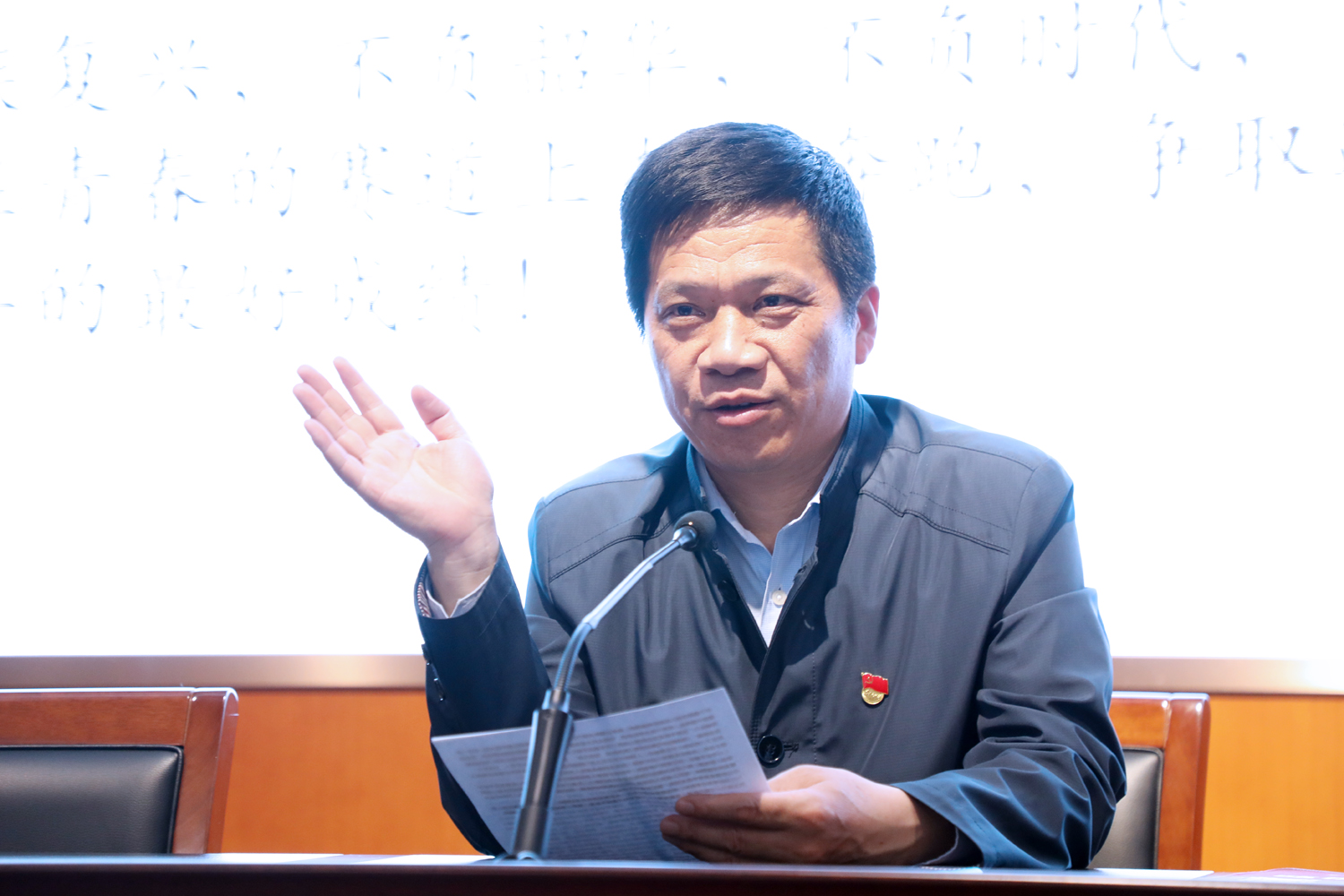 董裕华从人民大学的历史、教育的根本问题、总书记在人大等几方面入手,结合同学们的生活学习情况、海中的红色历史,生动形象、深入浅出地带领大家学习讲话精神,勉励所有同学,要牢记党的教诲,立志民族复兴,不负韶华、不负时代、不负人民,要把爱党爱国落实到具体行动上。党有号召,团有行动,要做习近平总书记教育思想的践行者。他激励大家,要把深入学习习近平总书记重要讲话精神和我们青年人的学习生活密切结合,贯穿始终,学而信、学而用、学而行,树立远大志向、坚定理想信念,为实现中华民族伟大复兴的中国梦而不懈奋斗。