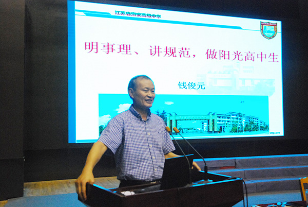 8月22日晚6:30,高一年级全体同学齐聚体艺馆聆听省海中钱俊元副校长题为《明事理、讲规范,做阳光高中生》的讲座。讲座由教研室吉晓军副主任主持。