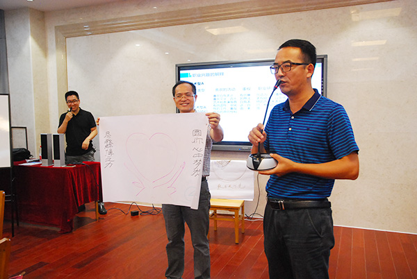 在个人特质探索模块,李老师通过趣味性的体验活动,带领大家重点探索了个人的兴趣、能力、价值观和人格四大模块内容。通过“社团有约”活动,李老师带领大家认识了霍兰德职业兴趣的类型及与生涯的关系,活动过程中,参训老师“物以类聚,人以群分”,根据自己感兴趣的社团活动重新组合小组,设计了本社团的LOGO,为社团起了口号并策划了相应的社团活动,根据参训老师的分享,李老师带领大家一一总结了霍兰德六种兴趣类型的关键特质及适合的职业环境要求、典型职业取向,并分析了兴趣和生涯发展的关系。