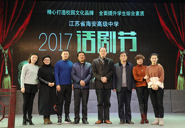 演出结束后,观看演出的海安县委宣传部副部长董玉龙、海安县教育局副局长颜敏,海中吕建校长,副校长吉传勇、杨斌、董裕华等领导上台慰问了全体演职员。全体观众们热烈鼓掌感谢全体演员们的精彩表演和辛勤的努力。