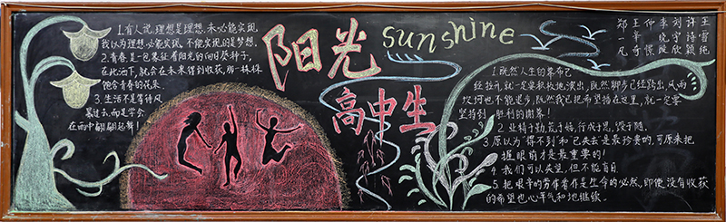 为加强对学生的心情和性情教育,培养具有阳光心理、向上精神、卓越追求、奋发人生等积极特质的阳光高中生,我校开展了“阳光高中生”主题黑板报评比活动。此次活动是我校“阳光高中生”主题教育活动的重要组成部分。