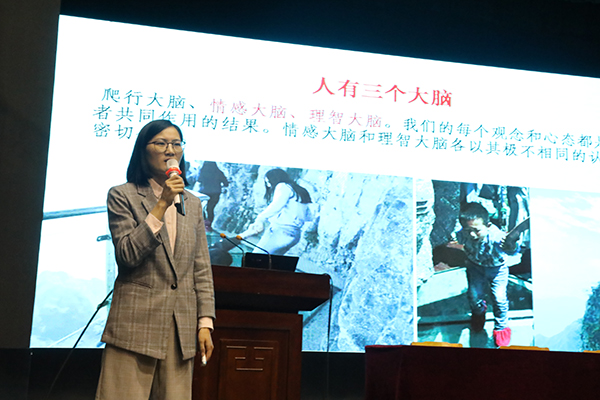 首先由孔翠老师对高三年级全体学生进行了考前心理助力:SFBT助力迎战2018高考。