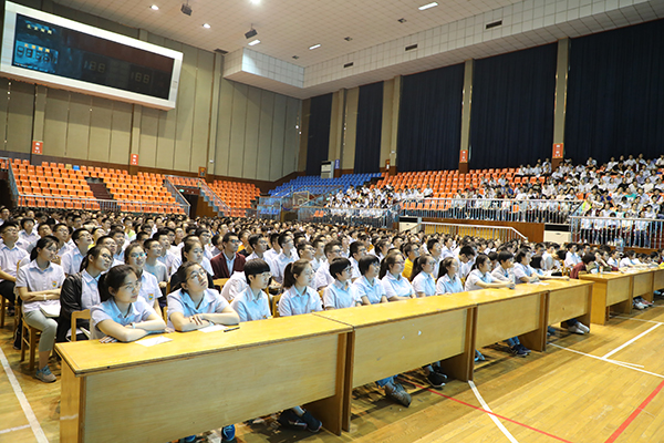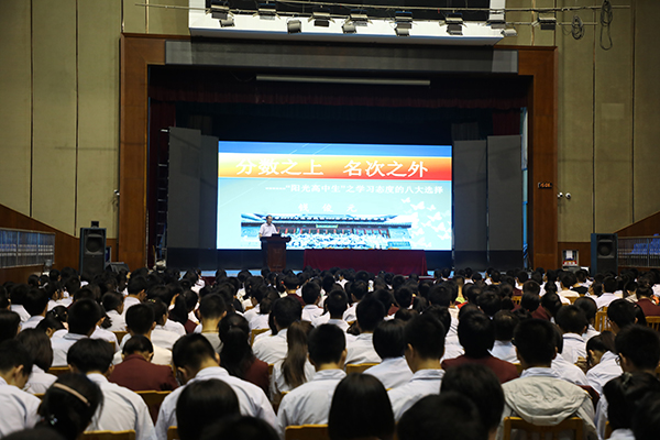 接着杨斌副校长对高一同学们的暑假生活做了具体的指导。他首先分析了期末考试成绩,然后谈了即将面临的高二选科问题,对同学们的选科作了指导和建议。最后对如何度过暑假提出了要求,即要有明确的目标、制定自己的暑假计划,同时积极参加社团活动、兴趣小组活动,不断提升自己。