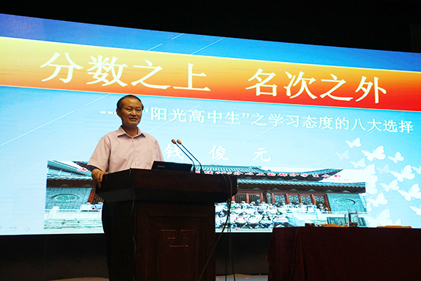 下午,学校老领导钱俊元副校长首先给同学们做了分数之上,名次之外——“阳光高中生”之学习态度的八大选择的讲座,他主要从学习的目的、路径、定位、方法、过程、策略、动力、状态等八个方面展开报告,幽默风趣,实例丰富,给同学们的健康成长指明了方向。