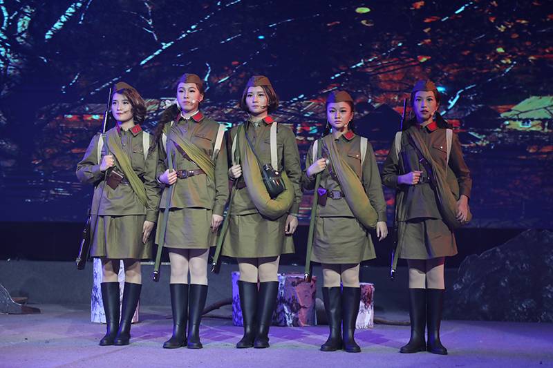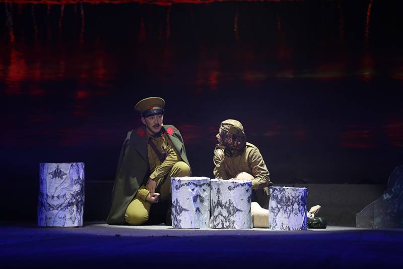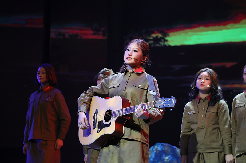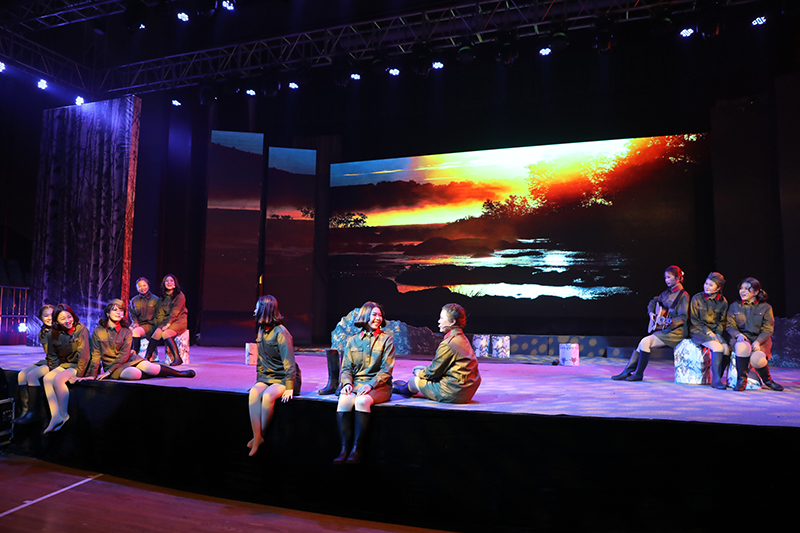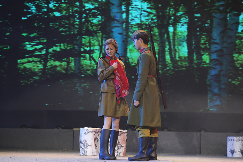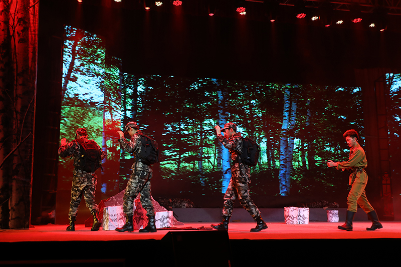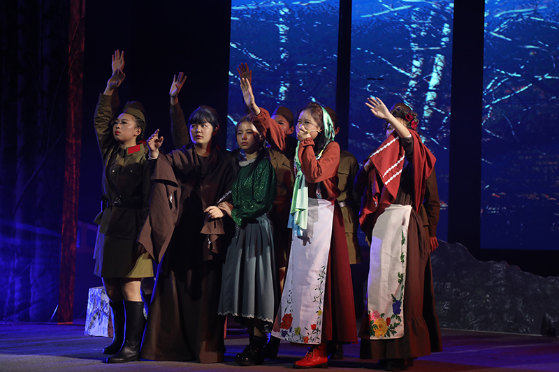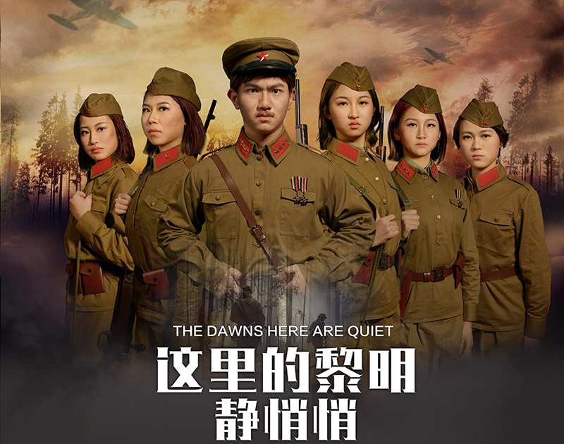 话剧《这里的黎明静悄悄》根据前苏联同名小说改编,讲述了卫国战争时期,5位对爱情、对生活有着美好憧憬的花季女兵,在准尉的带领下英勇抗击德寇,最终牺牲在白桦林中的故事,引发人们对侵略战争的思考和对人性的多元理解。故事情节跌宕起伏,扣人心弦。来自高一年级18个班级的52位学生演员联袂出演,三幕联排同台呈现,用极具张力的表演,塑造了一个又一个鲜活生动的人物形象,深深地感染了每一位到场的观众。