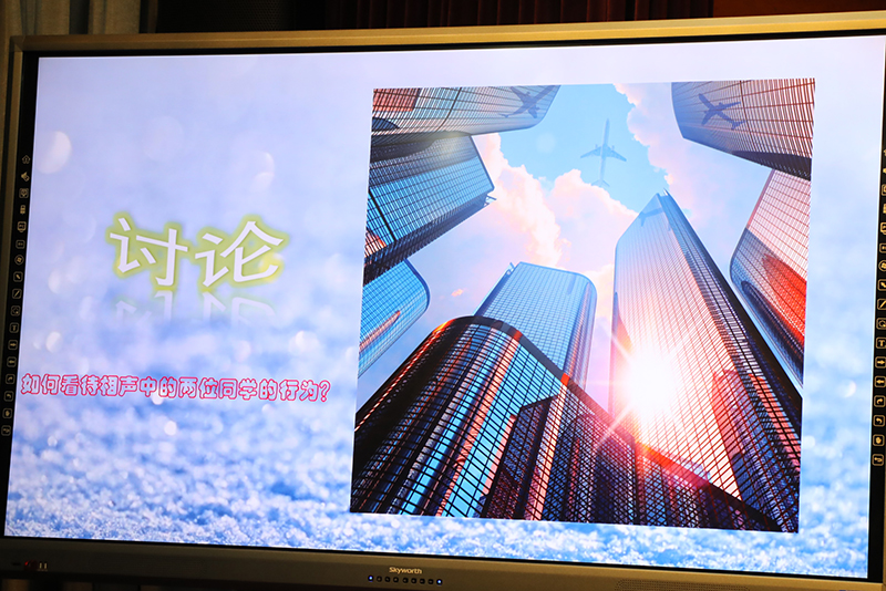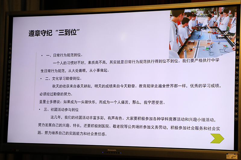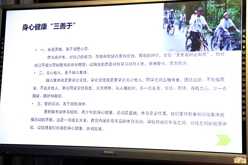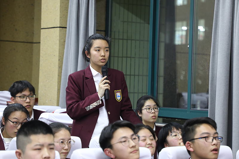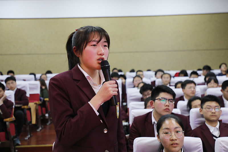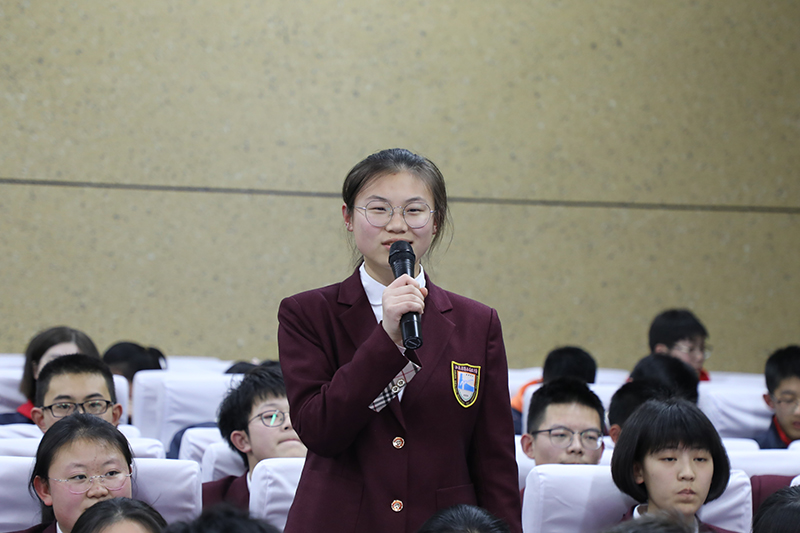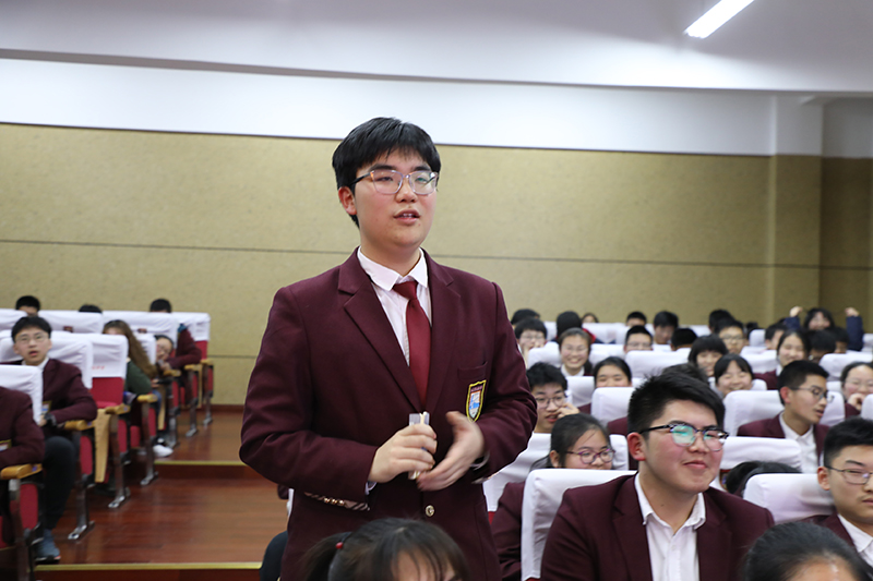 临近尾声,主持人以三则正面名人事例、一则反面事例、一个小短片,引出了阳光高中生需具备的三个品质——“乐观”、“自信”、“积极”。除此之外,学生对此话题还进行了拓展延伸,大家都受益匪浅。