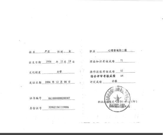 1 | 严石 | 女 | 国家二级心理咨询师 | 9323彩集团 | 青少年心理咨询、家庭婚姻、职场压力等 |