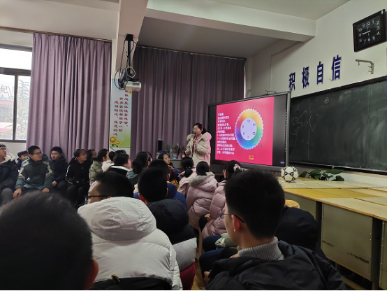 新的座位排好后,心理老师带领大家体验了“击鼓传球”的游戏活动,活动中的“幸运者”一一面向大家作了自我介绍。“我是来自**中学的喜欢踢足球的**”“我是来自**中学的喜欢看综艺节目的**”一个个真实有趣的介绍让大家记住了彼此的名字和爱好,有的同学还现场表演了一段才艺展示,同学们在轻松愉快的互动氛围中增加了认识,拉近了心理距离。