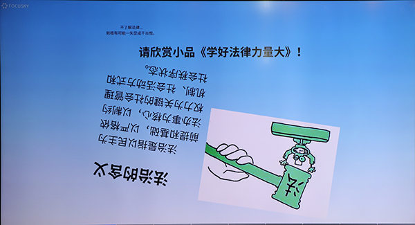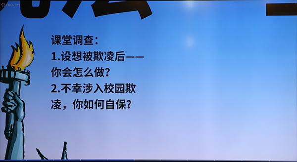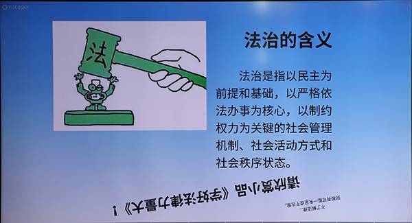 本次班会包括以下几个部分:首先解释了法治的含义;其次阐明了学法懂法的重要性;接着引入了一个严肃的问题——校园欺凌,然后同学们就“事后如何处理”、“如何自保”等问题展开了思考与讨论,互相交换意见;最后,我们号召同学们一起严于律己,遵守三大纪律十项注意,以一曲赞扬炎黄子孙的动听的琵琶独奏曲结束了本节班会。纵观班会,同学们踊跃发言、展示才艺。情景剧和小品紧扣主题,引人发笑的同时也发人深省。提问环节同学们都愿倾听、敢发言。
