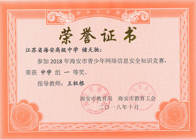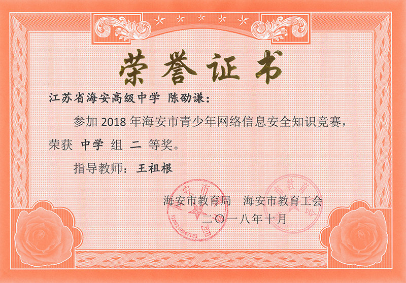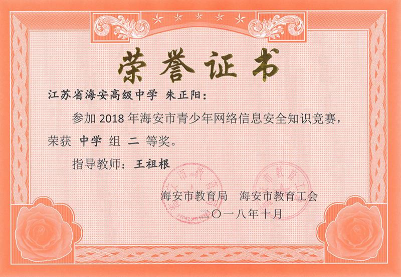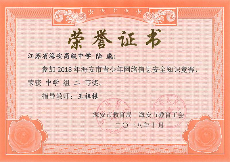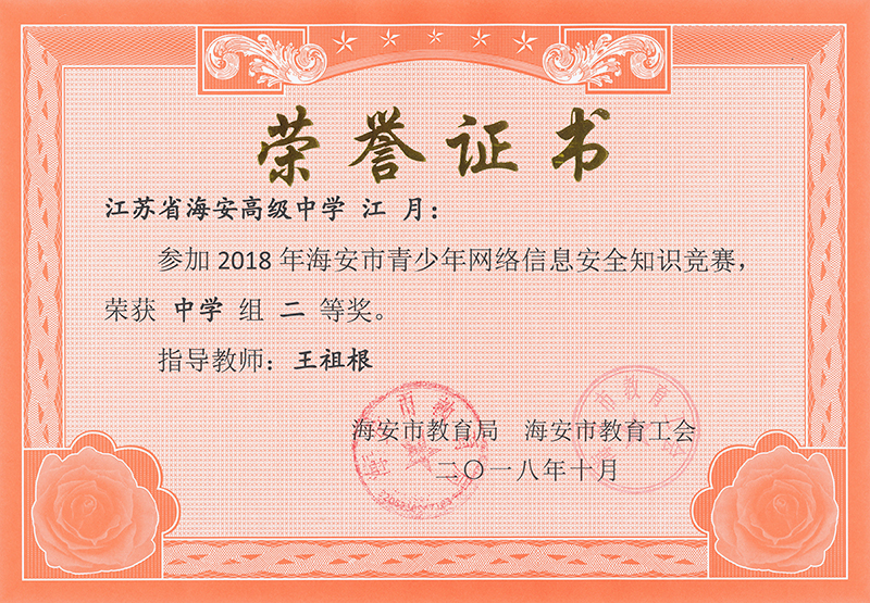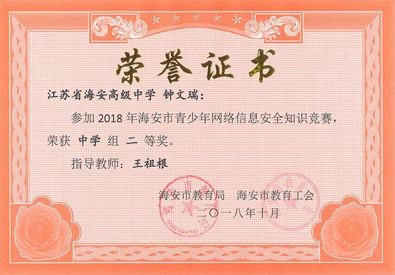 海安市青少年网络信息安全知识竞赛,我校多名同学获一、二等奖