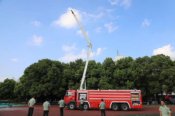 在参观消防抢险设备的同时,海安市黄河路消防中队的官兵们还向高一学生进行了高喷水车的救援展示,同学们也积极参加了灭火操作演练和模拟演练活动。