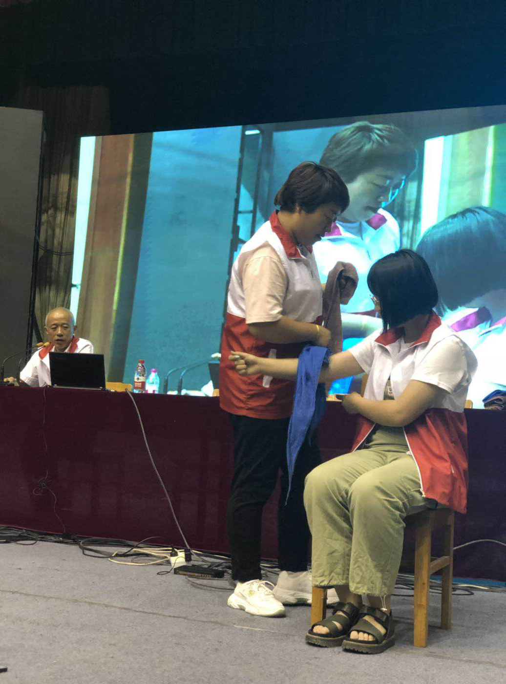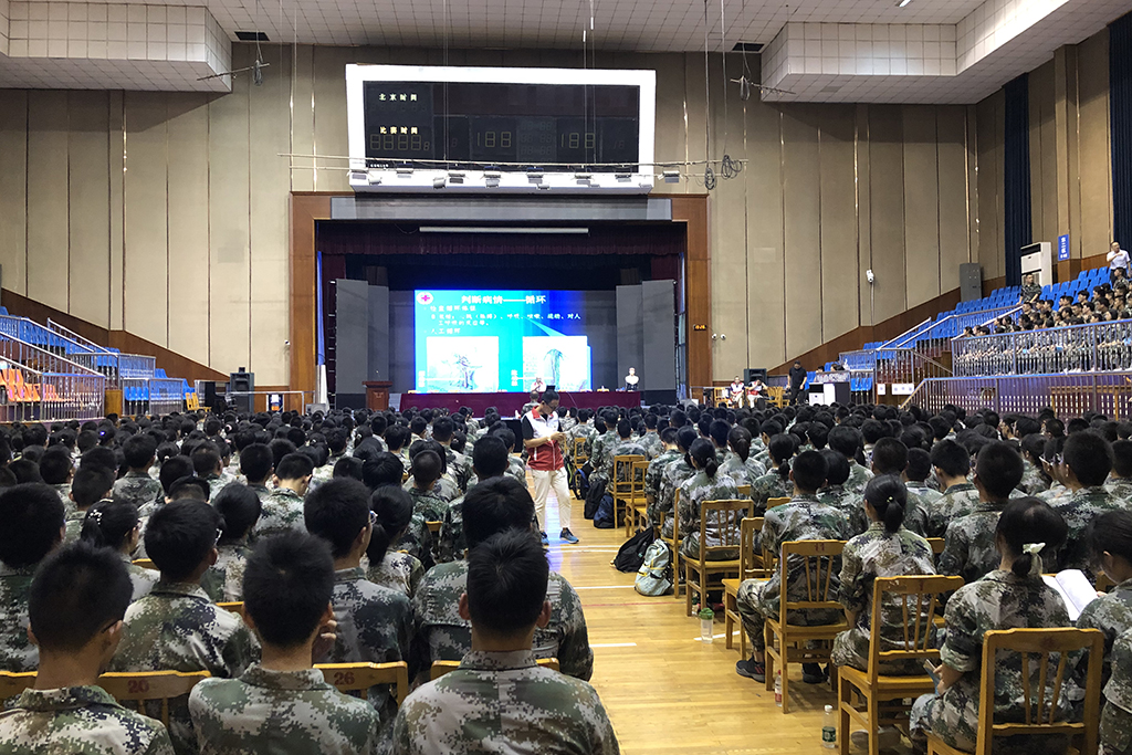 培训由德育处主任罗湘军主持。罗主任首先介绍了培训的专家团队,还强调了掌握卫生救护技能对生命安全的重要性。培训现场,市红十字会向每一位同学发放了《初级卫生救护》。