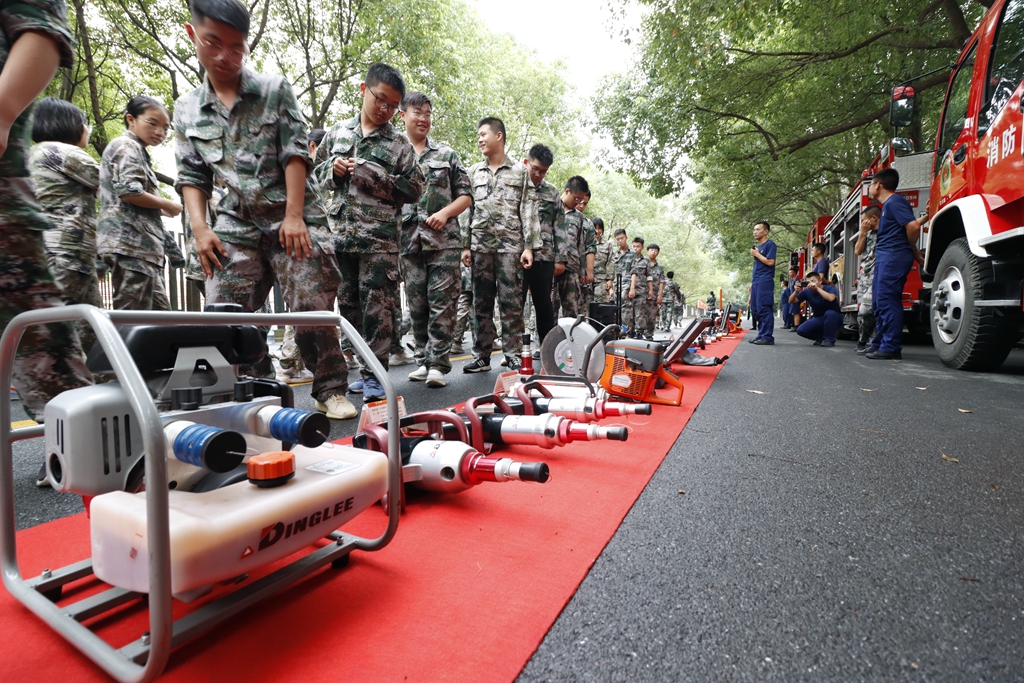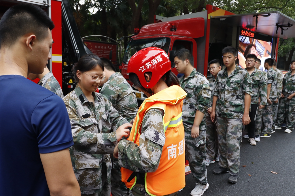 8月8日下午3时许,避险训练结束后,海安市消防大队对海安中学高一新生进行了消防演练。