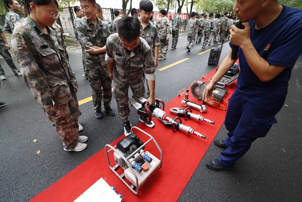 最后,全体同学参观了大量现代化的消防器材。消防官兵为同学们展示并介绍了消防和救援器材的功能和使用方法,同学们兴趣盎然,叹为观止。