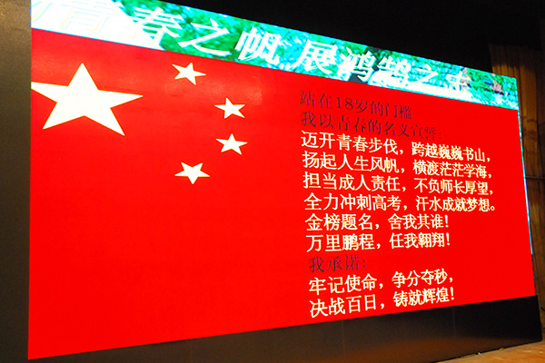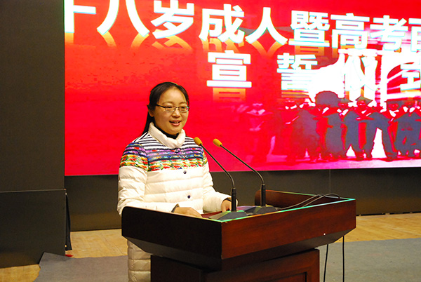 团委书记罗湘军老师带领全体同学宣读百日冲刺誓言:迈开青春步伐,跨越巍巍书山;扬起人生风帆,横渡茫茫学海;担当成人责任,不负师长厚望;全力冲刺高考,汗水成就梦想。金榜题名,舍我其谁!万里鹏程,任我翱翔!
