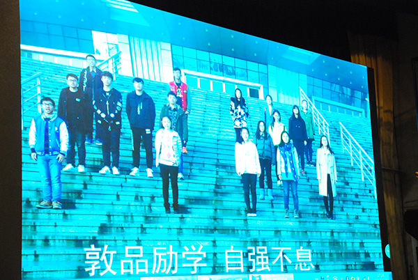 会议由学校副校长杨斌主持。活动前播放了这一届学生从进校军训到三年中的各项重大活动的镜头和视频,展示了本届学生的成长历程和在各项竞赛中取得的丰硕成果。