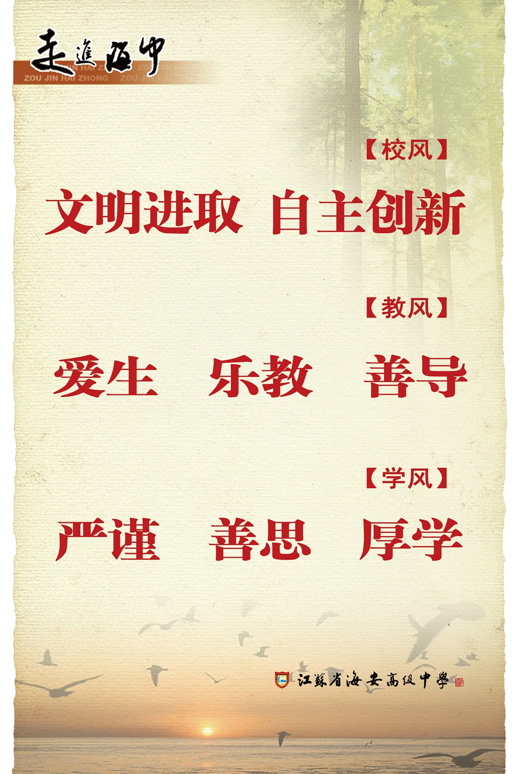 海安中学校训、校歌、校风教风学风
