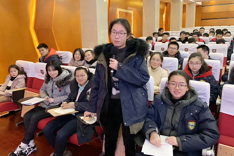 随后,教练组的许尧老师、丁雪云老师、王金林老师围绕“创作的本质”这一主题,分别从审题的思维途径、素材的生活化积累以及如何深入进行分析等几个方面和同学们进行了指导和互动式交流。三位老师的讲座内容丰富,深入浅出,引导同学们深入思考,拓宽思维,形成自我认知。讲座既贴近生活的本来样貌,又深入挖掘了从生活的源头进行创作的价值,拓展了文学素养,提升了思维品质,赢得了同学们阵阵热烈的掌声。