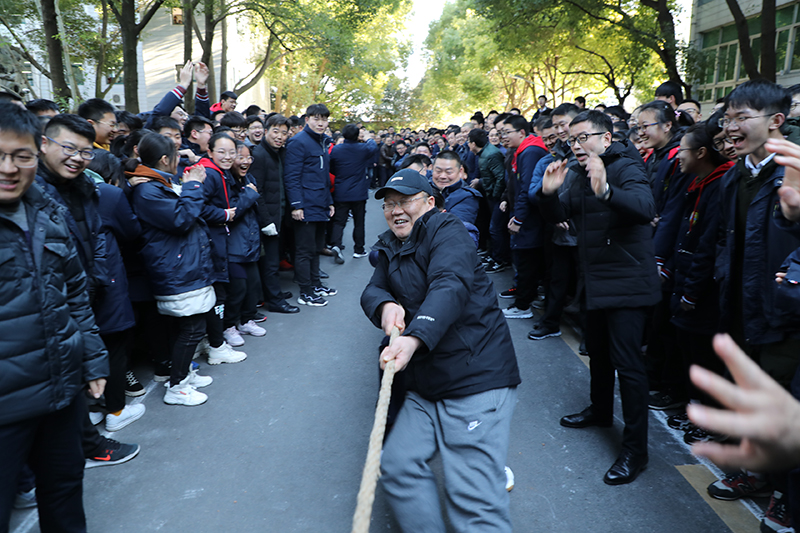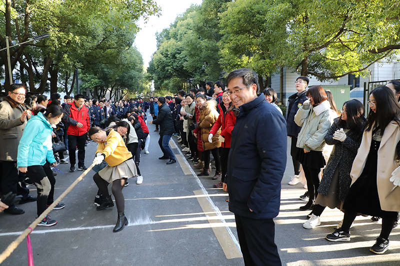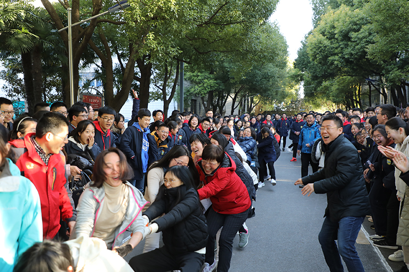3月7日下午四点十五分,“教职工拔河比赛”在学校操场东侧成才大道热烈开赛。比赛以高一、高二、高三、后勤综合四个大组分别组成男女子代表队共八支队伍参赛,每个拔河队20人。比赛采用淘汰制,每场比赛三局两胜决定胜负。体育组的老师们精心组织并负责裁判工作。
