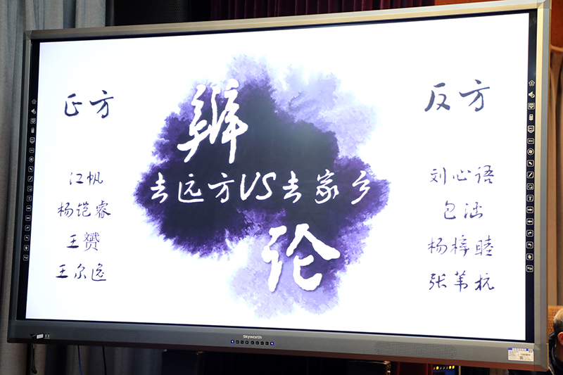 万众瞩目中,辩论队的同学闪亮登场,就“二三线城市的青年,为追寻人生价值,应当去远方还是回家乡”这一问题展开了激烈的辩论。主席徐倜同学进行总结陈词,并提出了深刻的观点,画龙点睛。接着,大家观看了一段视频,感受到在外地的海安人对故乡的真挚感情以及来到海安求学的徐之行同学对海安的真情评价。最后,主持人对班会进行了总结,多角度提出了发展优秀海安乡土人情的具体措施,帮助所有人明确了自己为了发展海安文化所应承担的责任。
