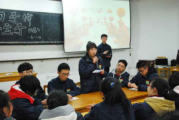 随着主持人高亢激昂的声音,主题班会拉开了序幕。主持人首先抛出问题:如果没有劳动的生活会是什么样子?接着大家欣赏了由同学带来的情景剧《假如没有三天劳动》。情景剧生动有趣,让同学们在笑声中产生了思考。接着,主持人问大家是否了解一些关于劳动的知识或文学作品。同学们积极讨论,并踊跃发言,使大家更进一步了解了劳动。同学们观看了有关劳动节起源的视频,通过观看视频,我们对劳动节悠久的历史有了更深入的感悟。接着,我们又欣赏了平日同学们辛勤打扫卫生的图片以及食堂里铺张浪费的图片,形成鲜明对比。之后,我们又欣赏了有关大国工匠的视频。针对“脑力劳动和体力劳动二者谁更重要”这个问题,同学们展开了一场激烈的辩论会。正、反两方的辩手口若悬河、妙语连珠,一句句辩词铿锵有力、发人深省。辩论结束,主持人进行总结。最后,董校长和王忠主任进行了点评,他们充分肯定了班会的精彩新颖,并对劳动进行更深入的讲解,令同学们受益匪浅。