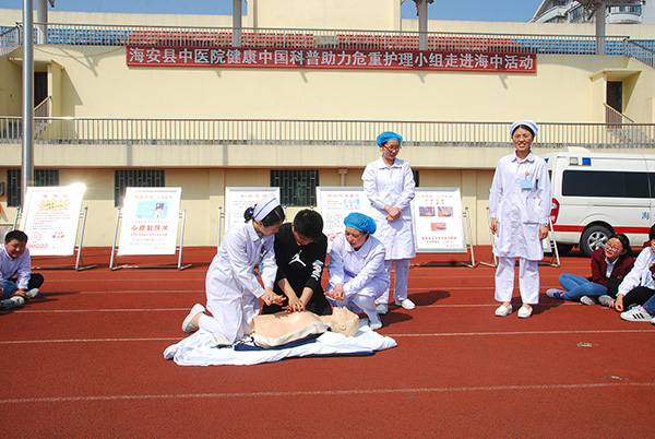 学校健康教育担负着增强学生健康的重任,是全面贯彻教育方针,对学生实施素质教育的重要途径,它对促进学生德、智、体全面发展,提高身心健康水平,具有十分重要的意义。学校重视健康教育,不仅注意把健康教育与学生习惯养成教育相结合,注重行为和习惯的培养,而且注重把健康教育与学科教学紧密结合,更注重通过挖掘校内外的教育资源,采取多种形式对学生进行教育。2017年5月10日海安县中医院急诊急救、危重症护理小组以“健康中国,科普助力”为主题,举办了一场别开生面的健康教育讲座,讲座上中医院的相关专家为广大师生讲解了心脏复苏等危重病症及时处置的相关知识,赢得了师生的一致好评。通过这次讲座不仅使广大师生认识到了医务人员的辛苦,而且也提高了自身的疾病防范能力,增强了健康意识。