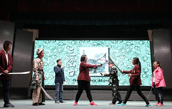 2千余名师生及我县部分“票友”、爱好者观看了董源、张智博等艺术家表演的《智取威虎山》、《失子惊疯》、《三岔口》、《赤桑镇》等脍炙人口的折子戏,让广大师生近距离观赏、细细品味京剧的魅力,演出获得在场师生的一致好评。