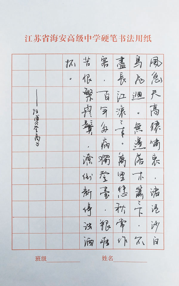 13 | 硬笔 | 高一9班 | 许欣怡 |