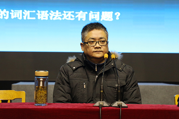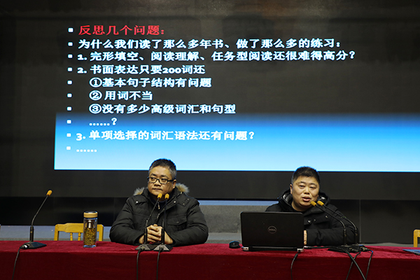 县高中英语教研员、省海中英语教师崔军给同学们做了《加强课外阅读 提高学生素养》的读书报告。崔老师首先结合近几年的高考,幽默风趣地向同学们讲解了为什么要进行课外阅读;然后又给同学们展示了一些外刊,告诉同学们该读什么;最后又向同学们介绍了有效阅读的一些方法。