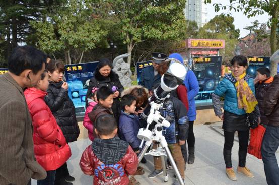 我校天文社开展学雷锋科普志愿服务活动 来源: 发布时间:2018-03-13 00:00:00 浏览次数: 次 【字体:小 大】 学雷锋日过去了,我们仍在继续。3月10日下午,天文社的同学们来到海陵公园进行学雷锋科普志愿服务活动,吸引了大量市民。小科学爱好者们兴致勃勃地给市民讲解宇宙的结构与形成,教小朋友们操作天文望远镜观测太阳黑子、解释太阳黑子成因。一位老大爷惊讶不已,“原来天上是这个样子啊。海中的这些伢儿样样行”。 学雷锋科普宣传活动展示了海中学子良好的形象,我们更期待这样的活动能使更多的人了解我们的世界、破除迷信、提高科学素养。 分享到: 【打印正文】