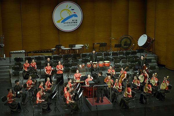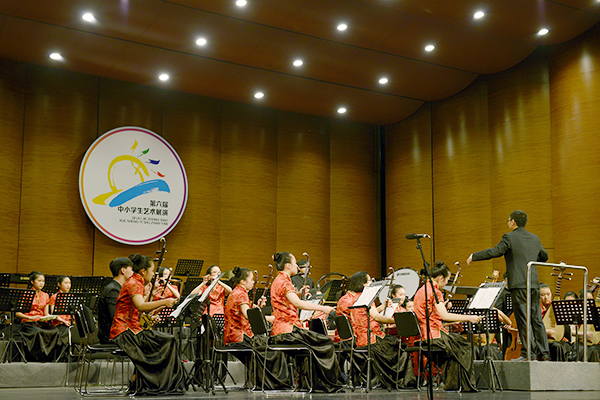 2018年7月初,海安中学民乐团接到代表南通市参加省艺术展演的通知,便进入了紧张的排练。作为一支新兴的高中民乐团队,第一次参加省级展演,全校上下非常重视,学校领导多次亲临现场指导,民乐团所有学生和家长都非常珍惜这难得的机会。在整个暑假排练过程中,同学们克服了很多困难,不断挑战自我,从乐曲的声部调整、音色的细化,到乐曲节奏、速度的变化,短短的一个多月排练,整个乐团有了一次质的飞跃。全体家长包括一些高三学生家长都十分支持此次展演活动,积极做好后勤服务工作。
