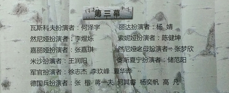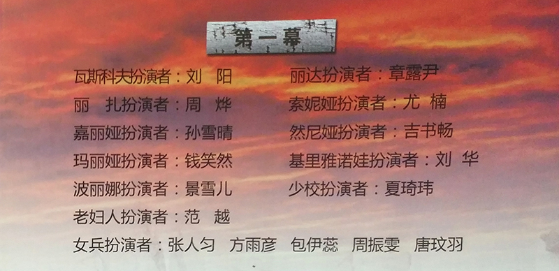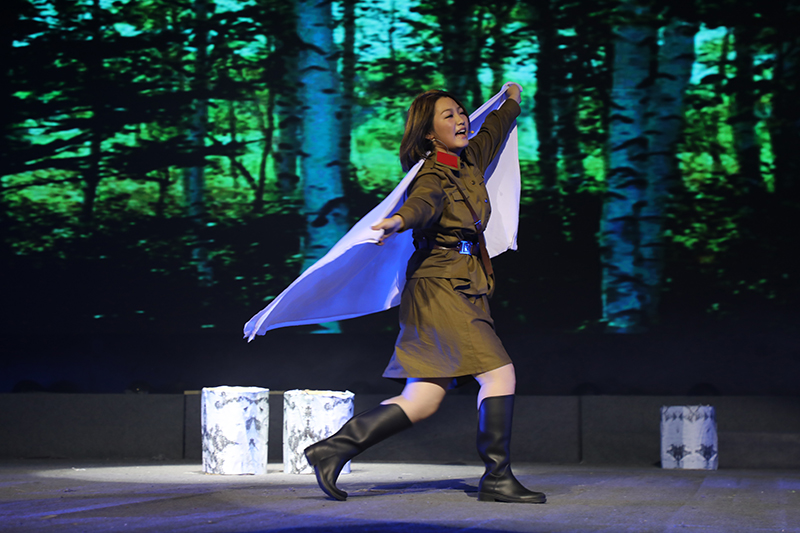 话剧《这里的黎明静悄悄》根据前苏联同名小说改编,讲述了卫国战争时期,5位对爱情、对生活有着美好憧憬的花季女兵,在准尉的带领下英勇抗击德寇,最终牺牲在白桦林中的故事,引发人们对侵略战争的思考和对人性的多元理解。故事情节跌宕起伏,扣人心弦。来自高一年级18个班级的52位学生演员联袂出演,三幕联排同台呈现,用极具张力的表演,塑造了一个又一个鲜活生动的人物形象,深深地感染了每一位到场的观众。