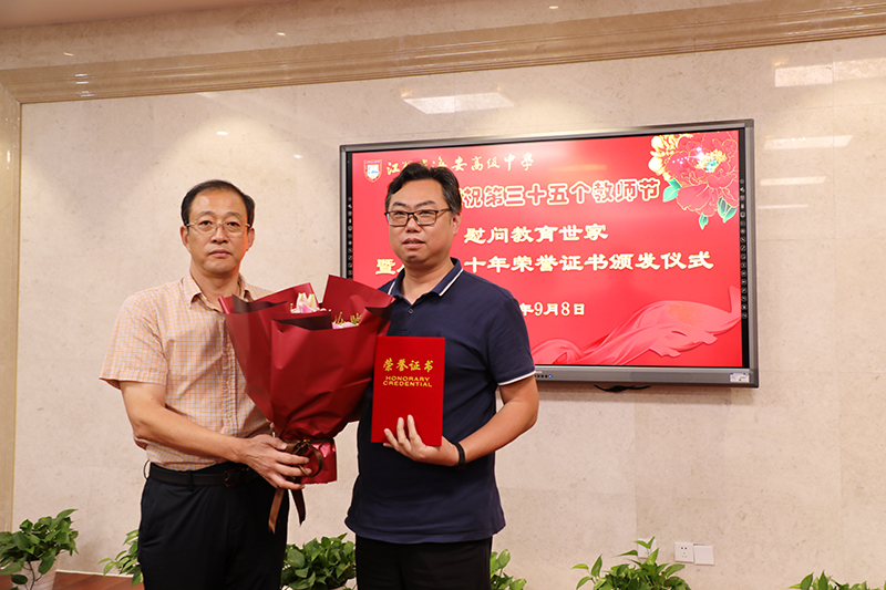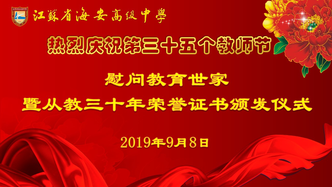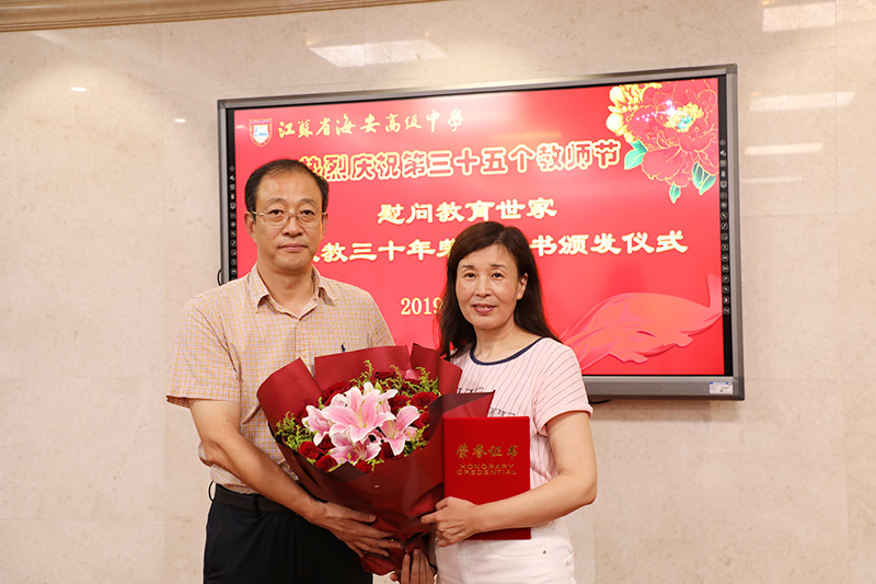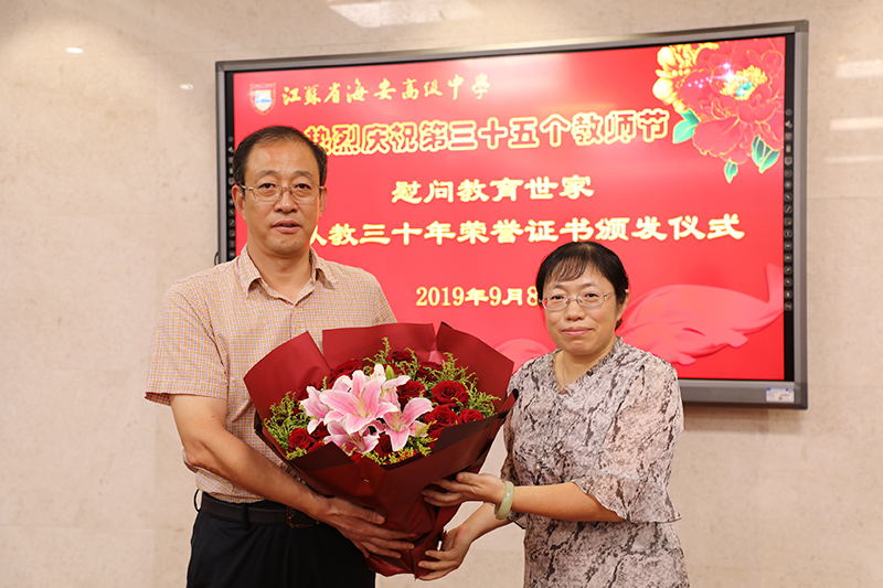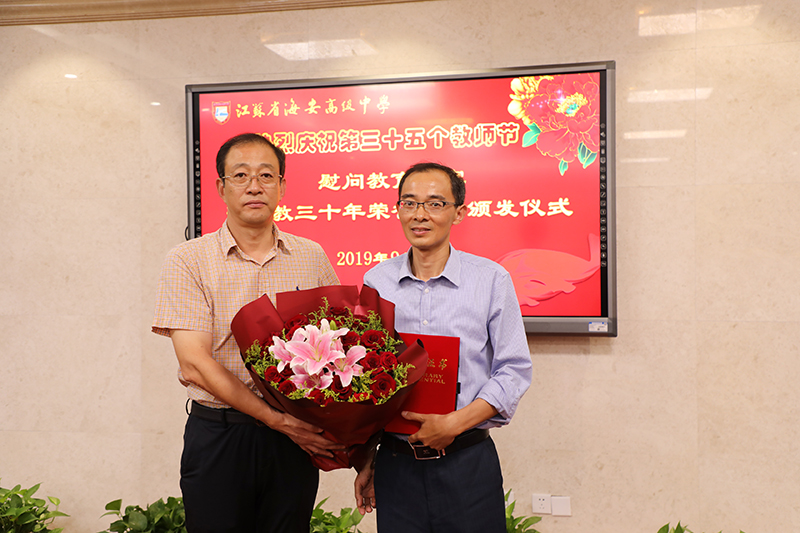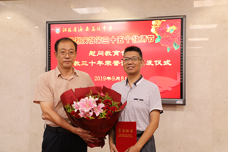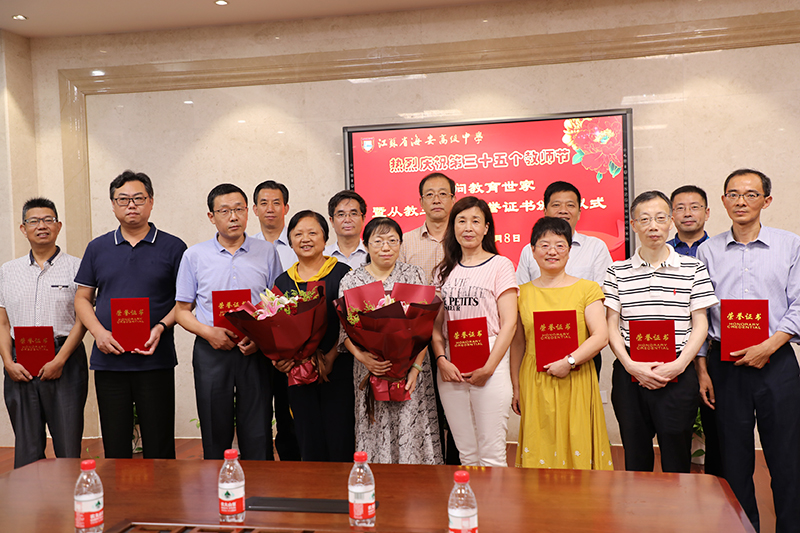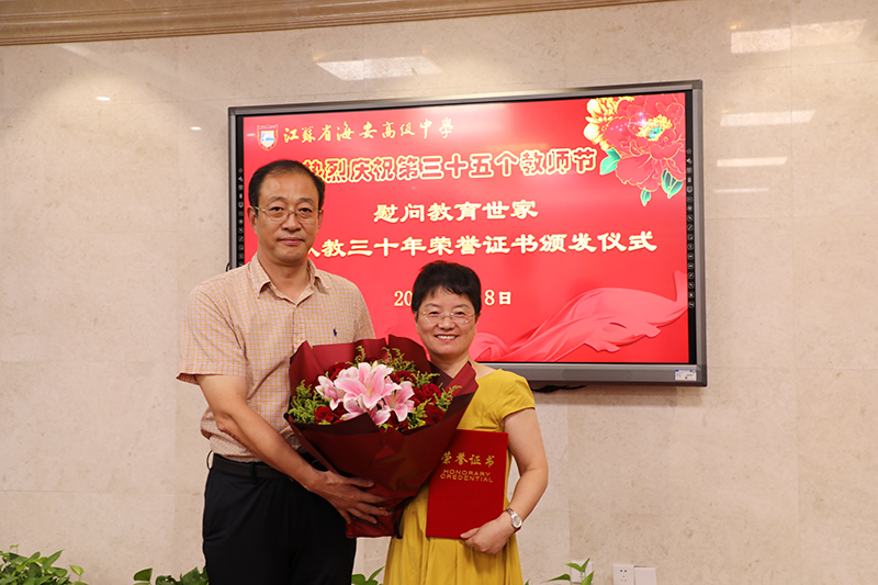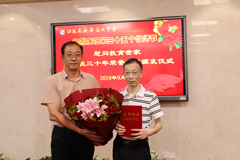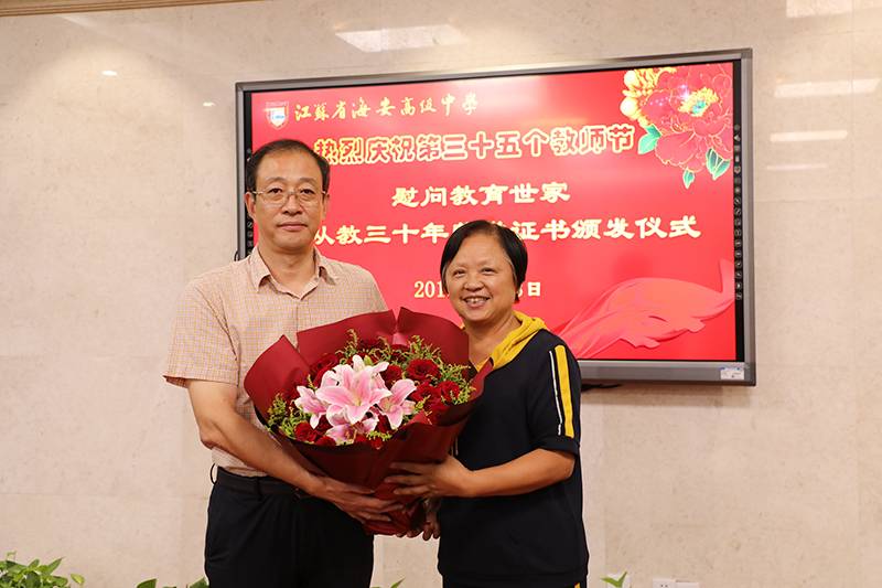 海安中学举行庆祝第三十五个教师节慰问教育世家暨从教三十年荣誉证书颁发仪式