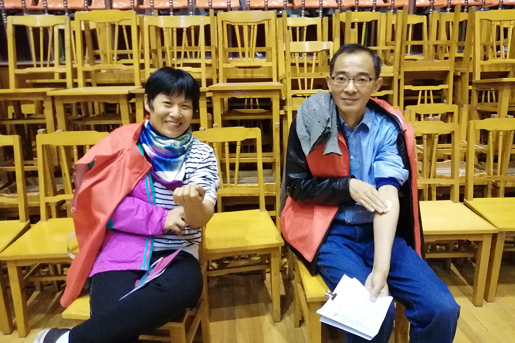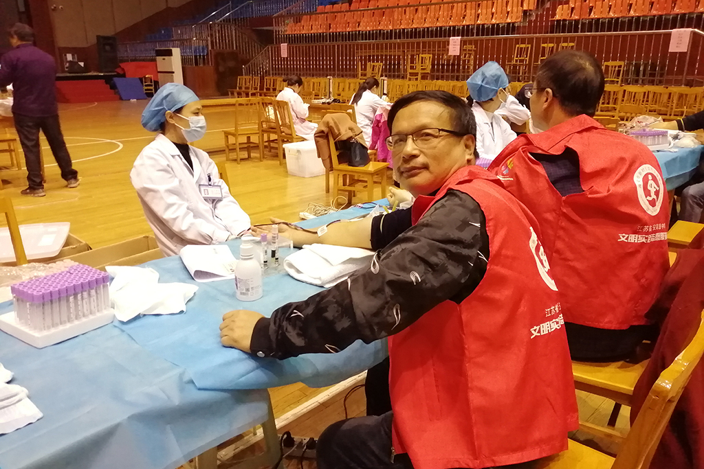 一大早,学校体艺馆和海安市人民医院血库的医务人员早早来到校体艺馆布置好了献血活动现场。教职工志愿者们在工作间隙络绎来到现场,在医务人员的引导下,排队有序参加“填表登记、测量血压、读卡确认、血液筛查”等献血环节。医务人员现场对自愿者抽取血样进行快速生化检验,筛选出符合献血标准的志愿者。最终大部分志愿者如愿献出了自己的一份爱心,少数因身体疲劳等原因暂时没有能完成献血的志愿者表示将按照科学献血的要求调整作息时间,一段时间后再去人民医院献血屋完成今年的献血心愿。志愿者们有的是初次献血,有的已是多次参加献血活动,还有的献血已经超过4000毫升,荣获江苏省无偿献血荣誉证书。闲谈中刚刚献完血的陈萍老师用最简洁、最朴实的话语道出了大家共同的心声:“献血是幸福的!”