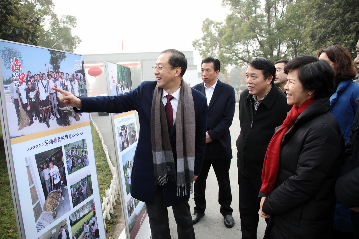 12月12日上午,江苏省教育厅副厅长顾月华、基教处处长陆岳新等领导一行,在海安市教体局局长章晓丽的陪同下来海安中学劳动教育实践基地——乐百年海中农场调研。海中全体班子成员参与了接待。