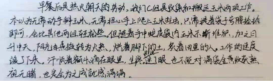 汗水顺着头发滴入眼角,那一刻我才真正体会到农民伯伯的辛苦,心底油然而生出一股敬意。