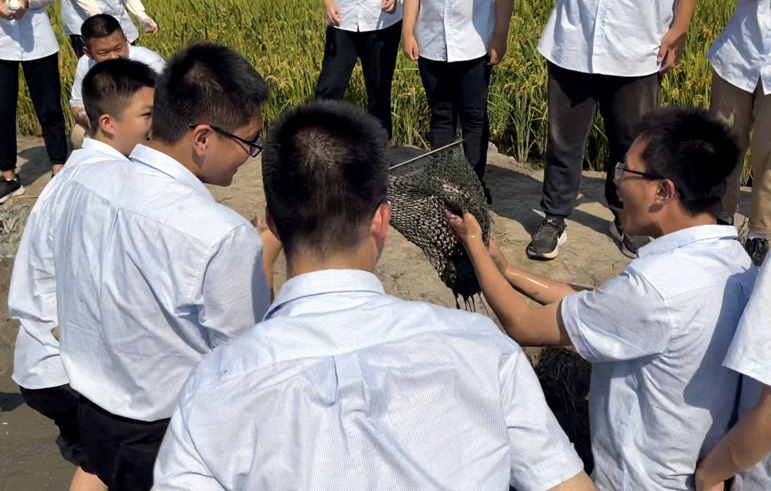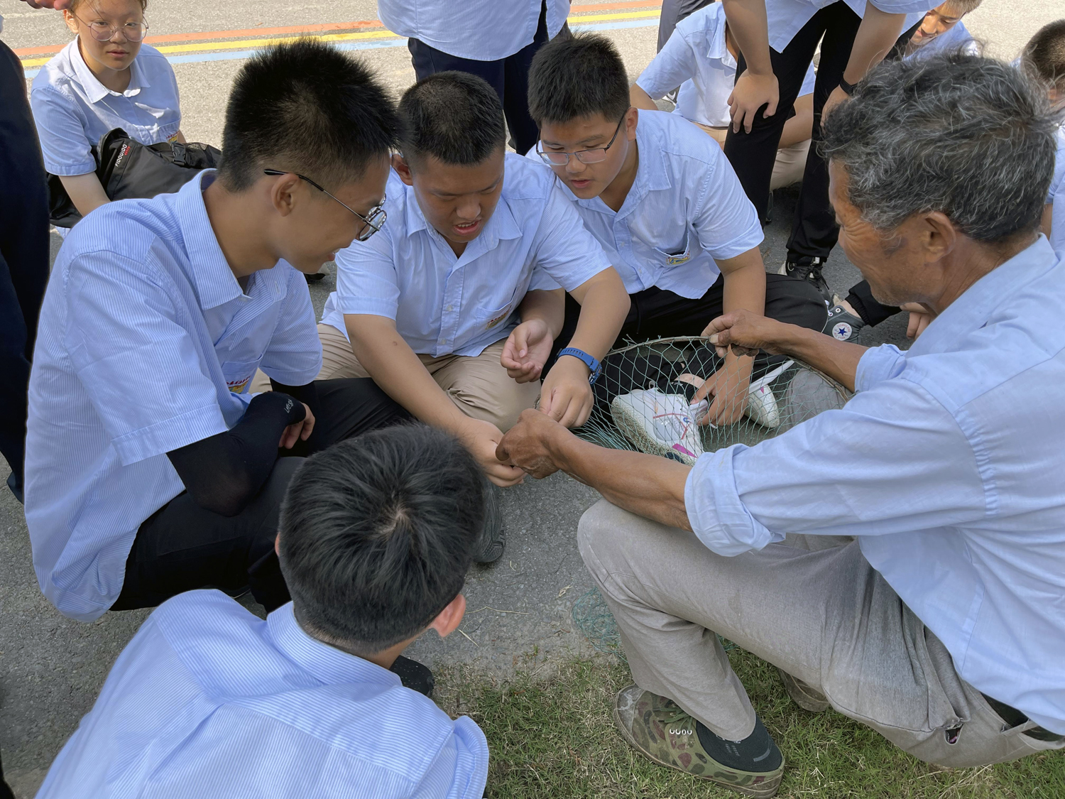 俗话说“靠山吃山,靠水吃水”,作为水乡人,渔网是一种非常重要的生产工具。所以今天我们跟在劳动指导老师后面学习了编织渔网,制作渔具,捕捉渠鱼的整个过程。