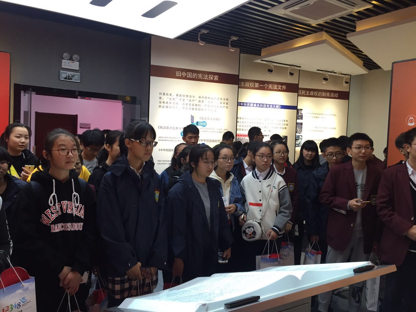 10月29日下午,9323彩集团高一(2)班的同学们参观了海安县宪法馆。