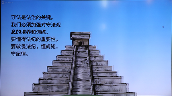 本次班会包括以下几个部分:首先解释了法治的含义;其次阐明了学法懂法的重要性;接着引入了一个严肃的问题——校园欺凌,然后同学们就“事后如何处理”、“如何自保”等问题展开了思考与讨论,互相交换意见;最后,我们号召同学们一起严于律己,遵守三大纪律十项注意,以一曲赞扬炎黄子孙的动听的琵琶独奏曲结束了本节班会。纵观班会,同学们踊跃发言、展示才艺。情景剧和小品紧扣主题,引人发笑的同时也发人深省。提问环节同学们都愿倾听、敢发言。
