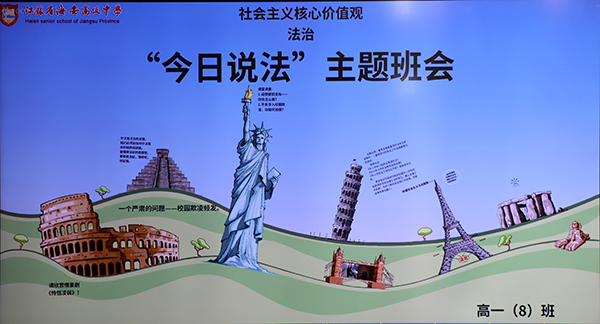 高一8班举行《社会主义核心价值观之“法制”》主题班会