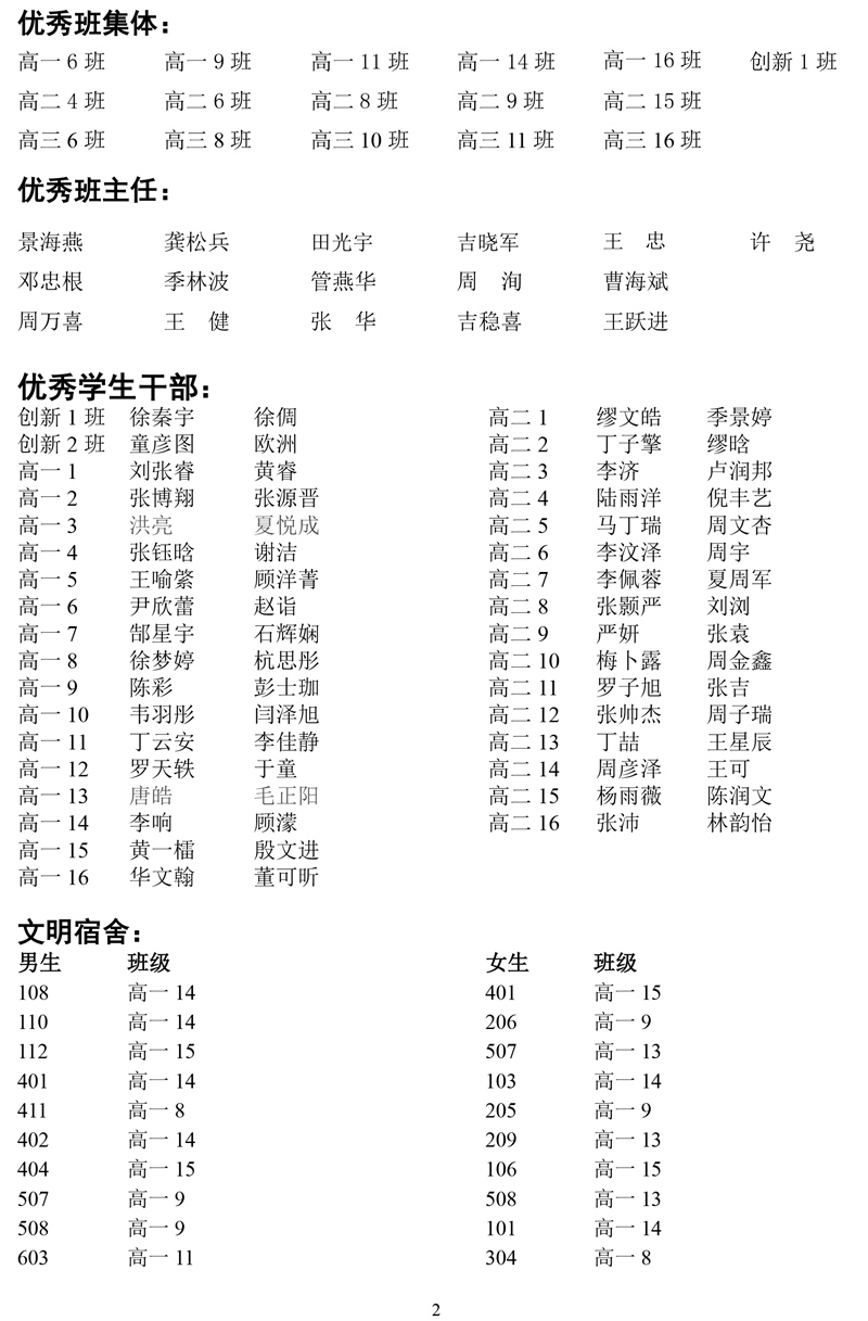 关于表彰“优秀班集体”“优秀班主任”“学习标兵”和“优秀学生干部”“文明宿舍”等先进典型的决定 来源: 发布时间:2018-09-01 00:00:00 浏览次数: 次 【字体:小 大】 分享到: 【打印正文】
