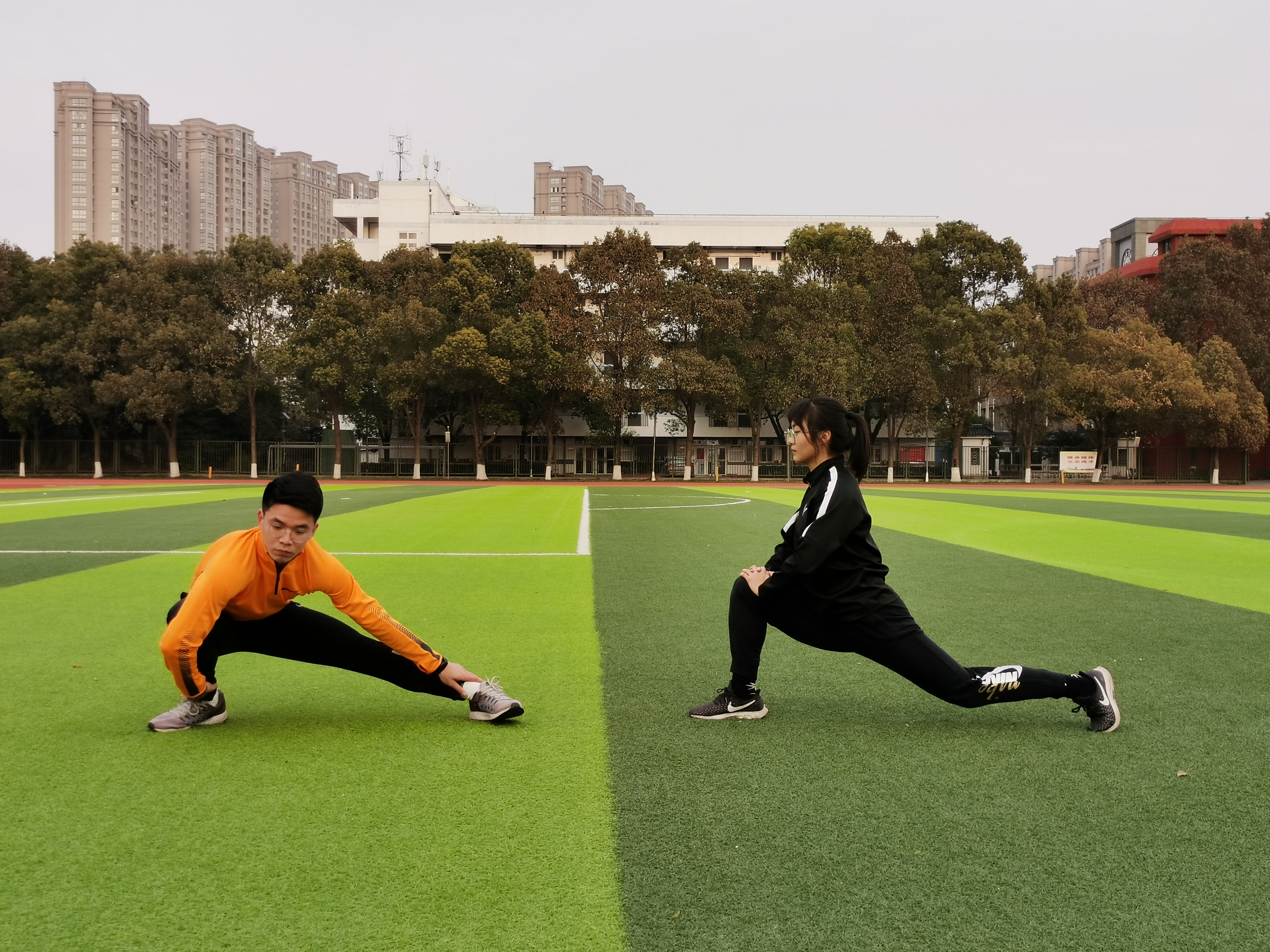 前后、侧弓步压腿: