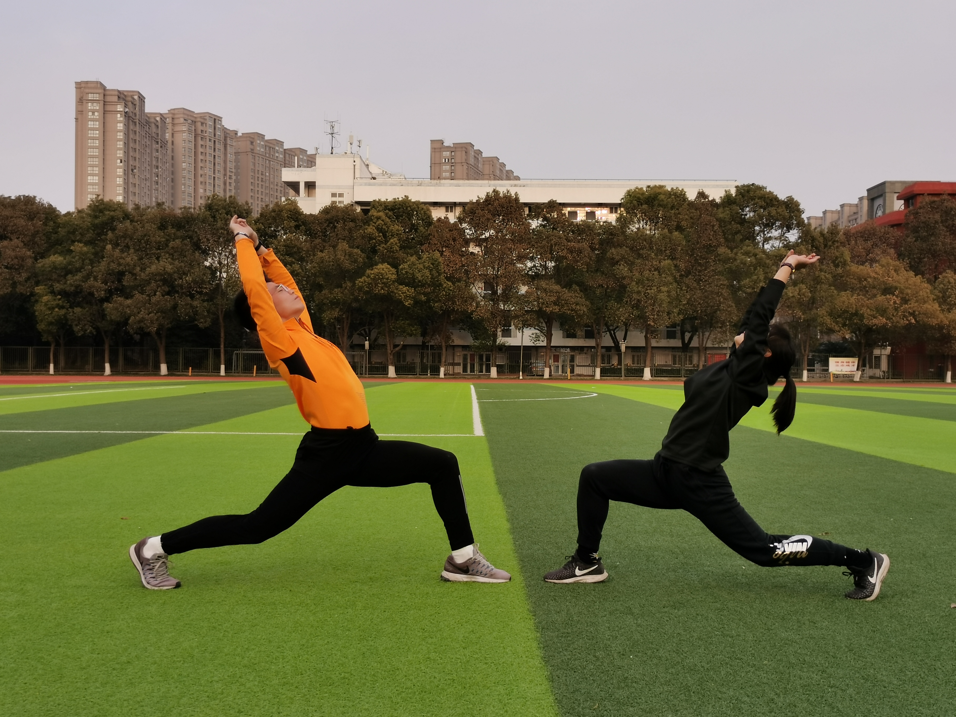 弓步要求同上,后仰尽量伸直腰部,后仰角度酌情。