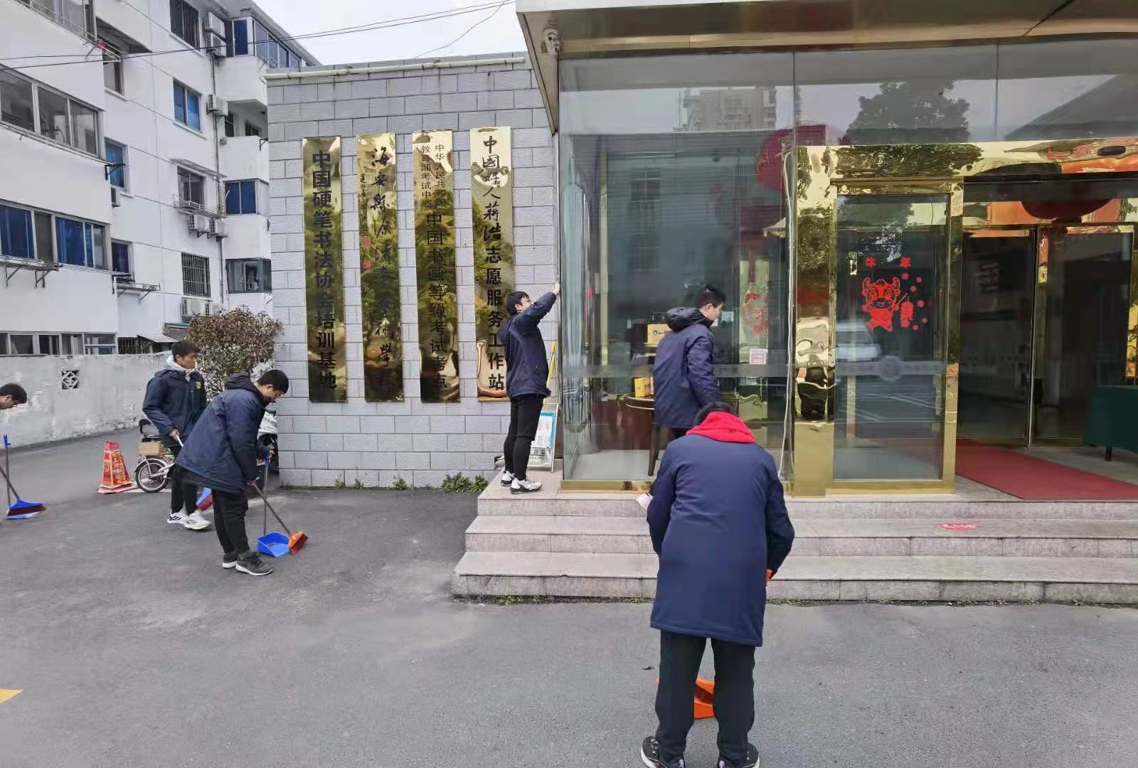 接下来,小组成员分工合作对志愿服务工作站、社区健身中心、社区街道等地进行了打扫。人行道上的落叶,社区居民遛狗时无意中留下的痕迹,道路旁一些废纸,还有落在玻璃窗和运动器材上的灰尘,都是我们清理的对象。打扫的途中遇到一些难以直接清除的垃圾,大家也会尽力将其处理干净。