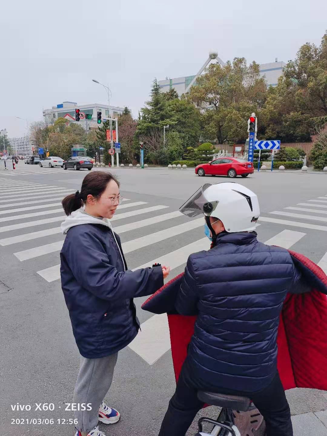 我们几个女生一起来到了孔子像这边的十字路口,按照事先计划,把宣讲对象按交通工具划分为三类。第一类是行人,主要是老年人和孩子,我们进行了过马路时不闯红灯、不乱穿马路、不翻越交通隔离设施,不违反交通信号指示通行等安全知识宣讲。第二类是非机动车,尤其是电瓶车驾乘人员,宣讲了按规定车道行驶、驾乘人员均要佩戴安全头盔、小孩要有安全座椅等。第三类是机动车,我们对驾驶人员的宣讲核心是礼让。行驶在路上,车主之间应该相互礼让慢行;行至人行道口,应该礼让行人。礼让是中华民族的传统美德,每一个行车小细节都会感动对方。