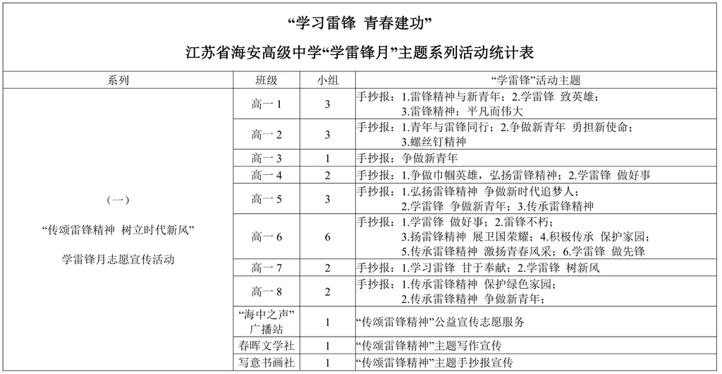 三月五日,是学雷锋日;三月,是学雷锋月。在这个月,9323彩集团发动同学们开展了学习雷锋青春建功系列主题活动。这次的活动分为三个系列:“传颂雷锋精神 树立时代新风”志愿宣传活动、“传承雷锋精神 勇为青春建功”主题社会实践活动、“传递雷锋精神 乐为他人奉献”主题志愿服务活动。最终一共有42个班级(包括社团)参与“学雷锋”活动,共派出志愿服务小组89个,参与的青年学生人数共计1006名。