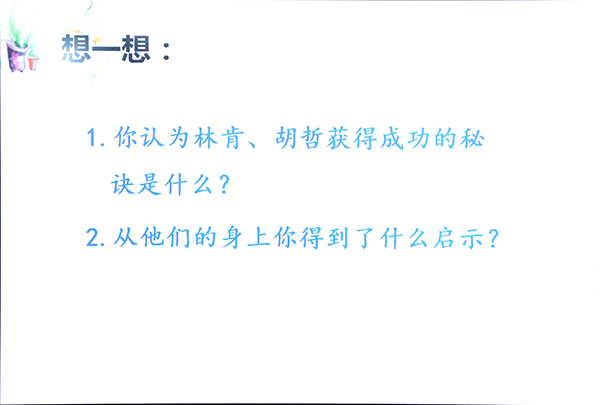 10月28日晚,高一(2)班在奥林匹克楼博雅小剧场举行了“态度决定一切”主题班会活动。学校女工委主任史慧敏、班主任张小龙、部分家长及学生代表观摩了本次班会。