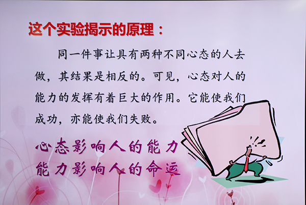 最后,班会在歌曲《我相信》中落幕。学校领导史慧敏主任和班主任张小龙老师加以点评。他们指出,态度影响着我们的学习、生活,决定着人生的成败。我们应当以乐观的态度,微笑着面对一切,相信未来可期。
