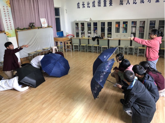 来自高一3班的张钰胤分享时说:“因为写小说30万字大概有82个人物,所以在玩谁在伞后面的游戏时最开始是很自信,因为82个人名都记住了,这里12个人我也都记得差不多,基本就是一种非条件反射,但是当站起来一瞬间大脑会有空白,造成了短暂的凝滞过程,但下一秒还是会说出对方的名字。所以有一次与顾雪峰对峙时,非常非常快的叫出了他名字。”